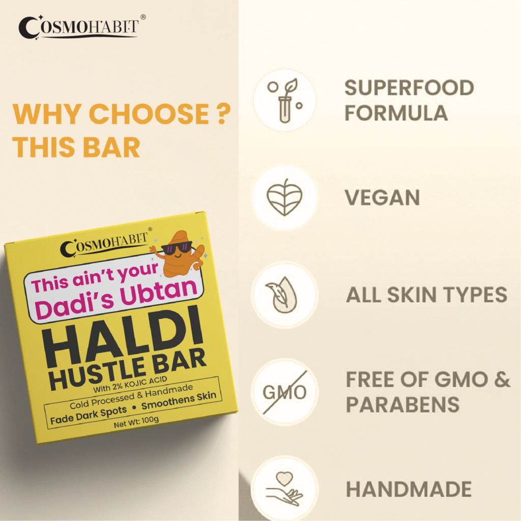 - Core Concept: “This ain’t your Dadi’s Haldi!” – Bridging tradition (turmeric) with innovation (2% Kojic Acid, dermatologist-tested).